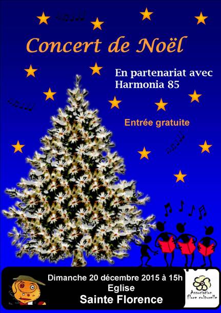 , l’Association Flore Culturelle, est heureuse de recevoir la Chorale Harmonia 85 de Champ St Père pour organiser un concert de Noël au sein de l’Église de Sainte Florence, le dimanche 20 décembre 2015 à 15h.