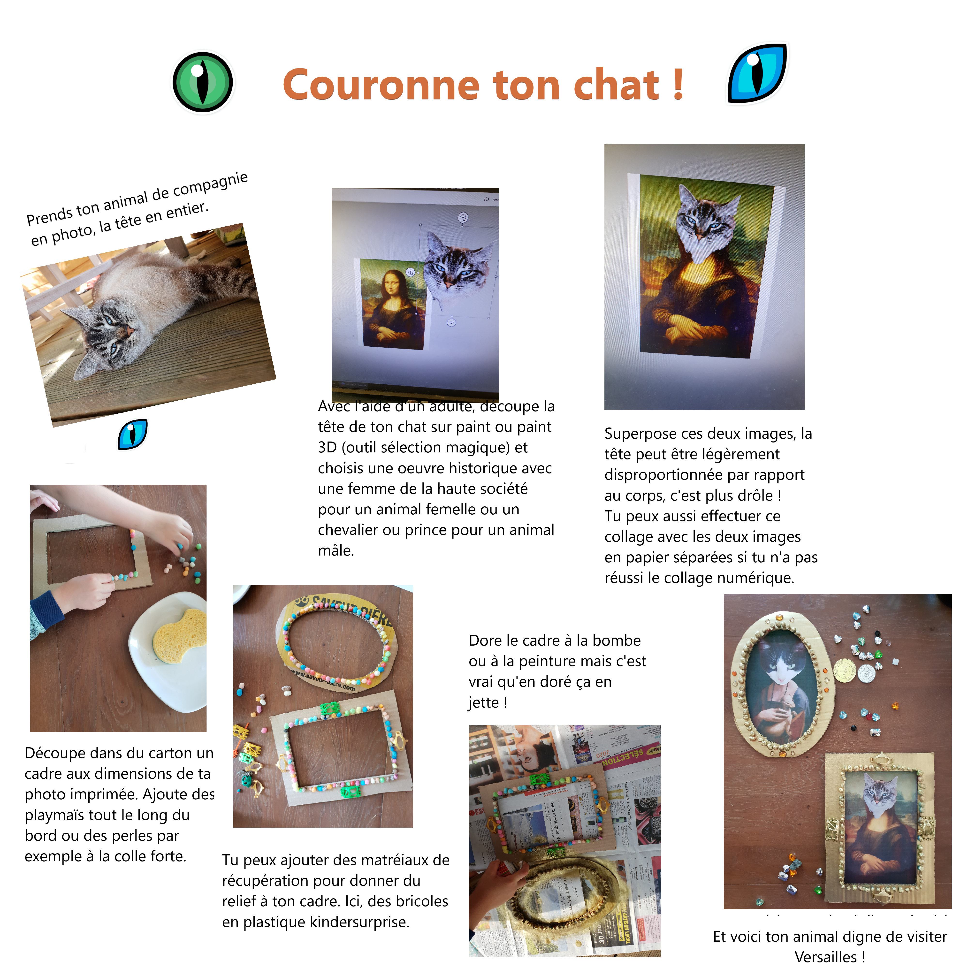 Nous te proposons un atelier pour réaliser un portrait royal de ton animal compagnie.