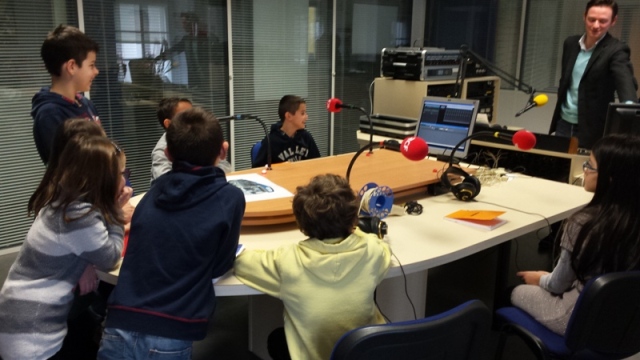 Nous avons enregistré des interviews avec un animateur qui s’appelle Foulques. Nous avons présenté notre groupe des Petits Reporters. Nous nous sommes présenté au micro et ensuite l’animateur nous a fait écouter. Il a accéléré le son et nous avions des voix de canard. Il a ensuite fait le montage pour couper les blancs et les bafouilles. Parfois ils enregistrent des émissions qu’ils diffusent la nuit quand plus personne ne se trouve dans les studios.