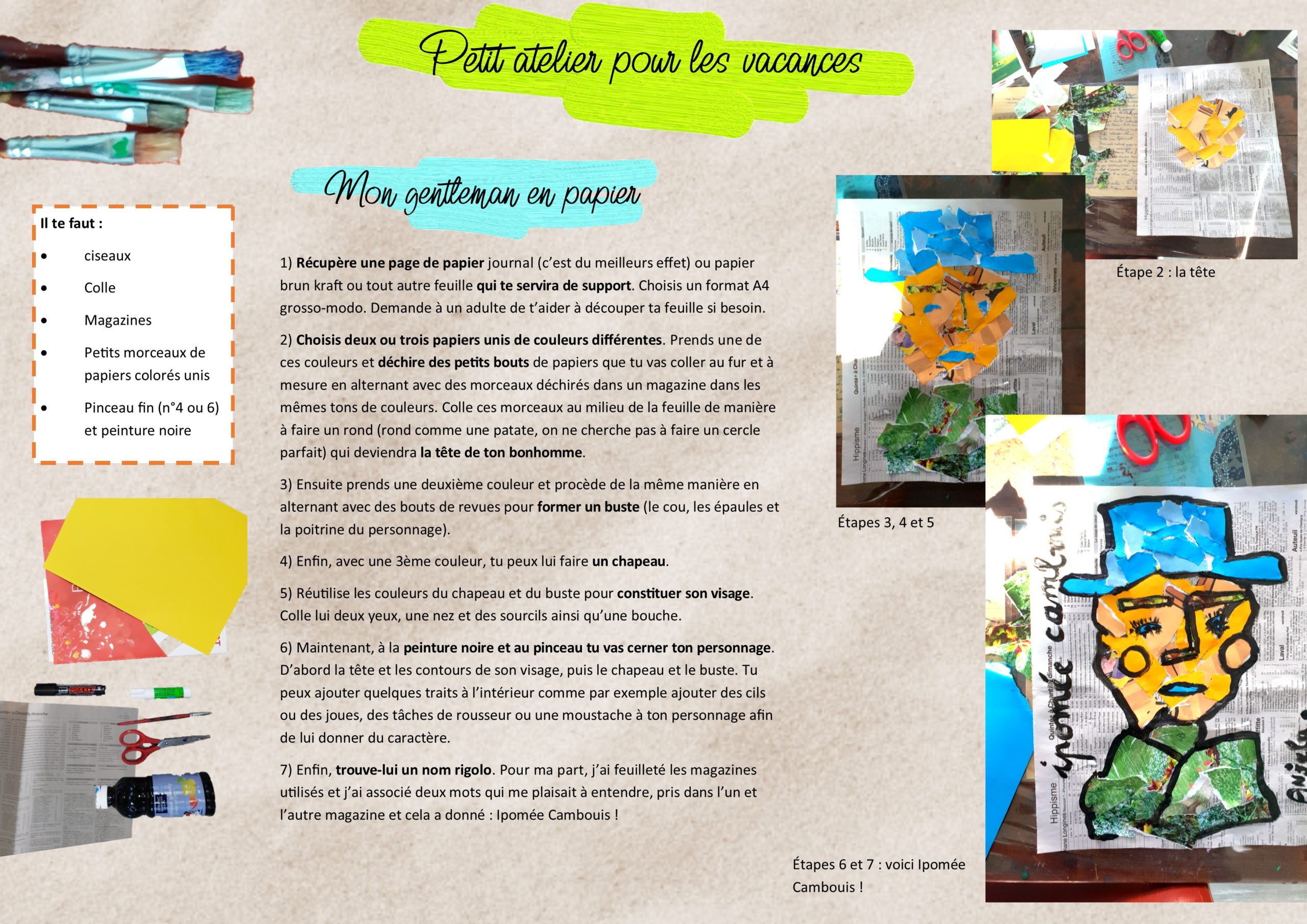 Mon atelier pour les vacances : le gentleman en papier